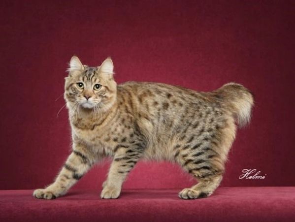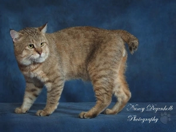 During a conversation I had with Bobbie, while benched next to each other at the TICA Party Cats show in Forest Park, Georgia on November 13, 2016, she emphatically told me that the breeds utilized to accomplish this look were Maine Coon, Jungle Cat, Bengal and Manx. There are particular attributes chosen from each breed which contributed to the look we now cherish. However, some people still refute which breeds were used. Regardless, the fact remains that there were no Bobcats.