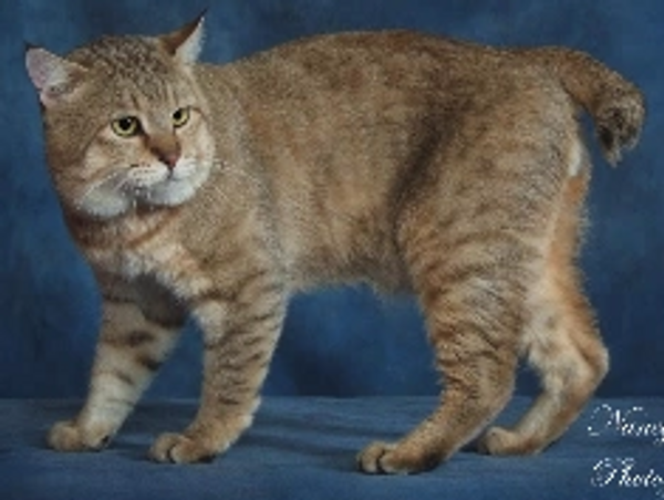 During a conversation I had with Bobbie, while benched next to each other at the TICA Party Cats show in Forest Park, Georgia on November 13, 2016, she emphatically told me that the breeds utilized to accomplish this look were Maine Coon, Jungle Cat, Bengal and Manx. There are particular attributes chosen from each breed which contributed to the look we now cherish. However, some people still refute which breeds were used. Regardless, the fact remains that there were no Bobcats.